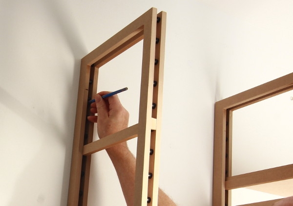 Setzen Sie eine Markierung mit einem Bleistift direkt unter einem der schwarzen oder weißen "Spacer" (Abstandshalter zwischen dem Seitenteil)
